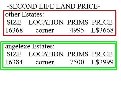 L$ 2000 per week see the land: http://maps.secondlife.com/secondlife/Holy/205/96/24 office: http://maps.secondlife.com/secondlife/angelexe/242/15/1001